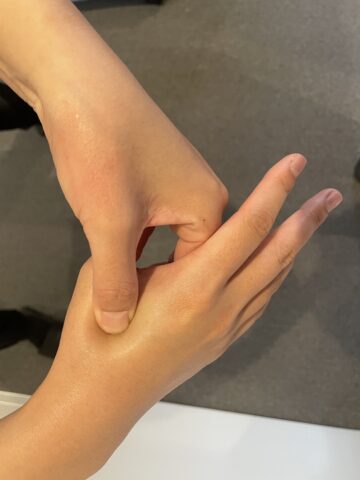 ツボ押しを行う場合は、指の腹をツボに当てて、ゆっくりと力をかけていきます。